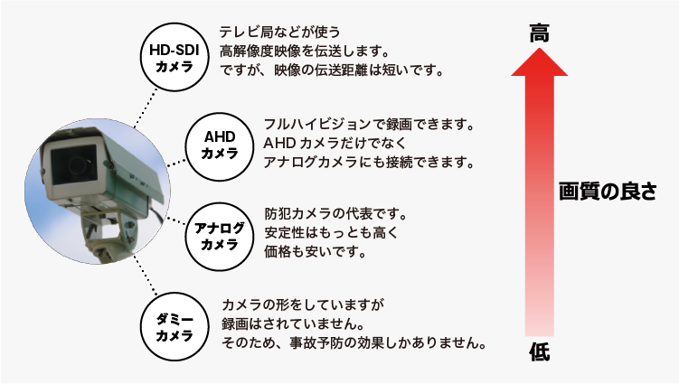 - 防犯カメラのデザインによって、周りに与えるイメージは異なります。そのため目的にあったカメラを選びましょう。